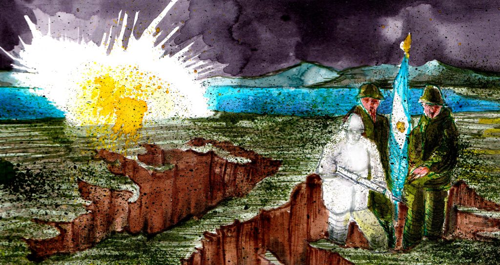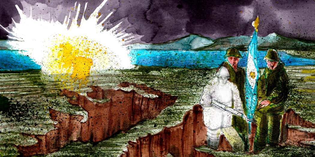 En la duermevela de la tarde lo soñó. Un Hércules, como un pájaro de acero, surcaba el cielo y los folletos que escupía anunciaban el armisticio. Tras setenta días de guerra, Puerto Argentino era un perímetro arrinconado contra la costa, jaqueado por el fuego de artillería inglesa. Un Dunkerque en el fin del mundo, pero sin milagros a la vista. Los bombardeos nocturnos eran incesantes y los soldados conseguían maldescansar durante las horas de luz, pero fue el frío quien lo zamarreó de su fantasía. Se despertó mojado y temblando. El grito de un suboficial lo puso a la orden.
